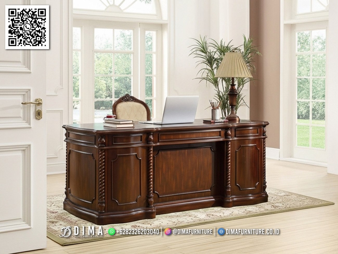 Meja kantor jati klasik elegan mewah jepara terbaru, pilihan tepat untuk ruang kerja profesional yang nyaman, berwibawa, dan penuh nilai estetika.