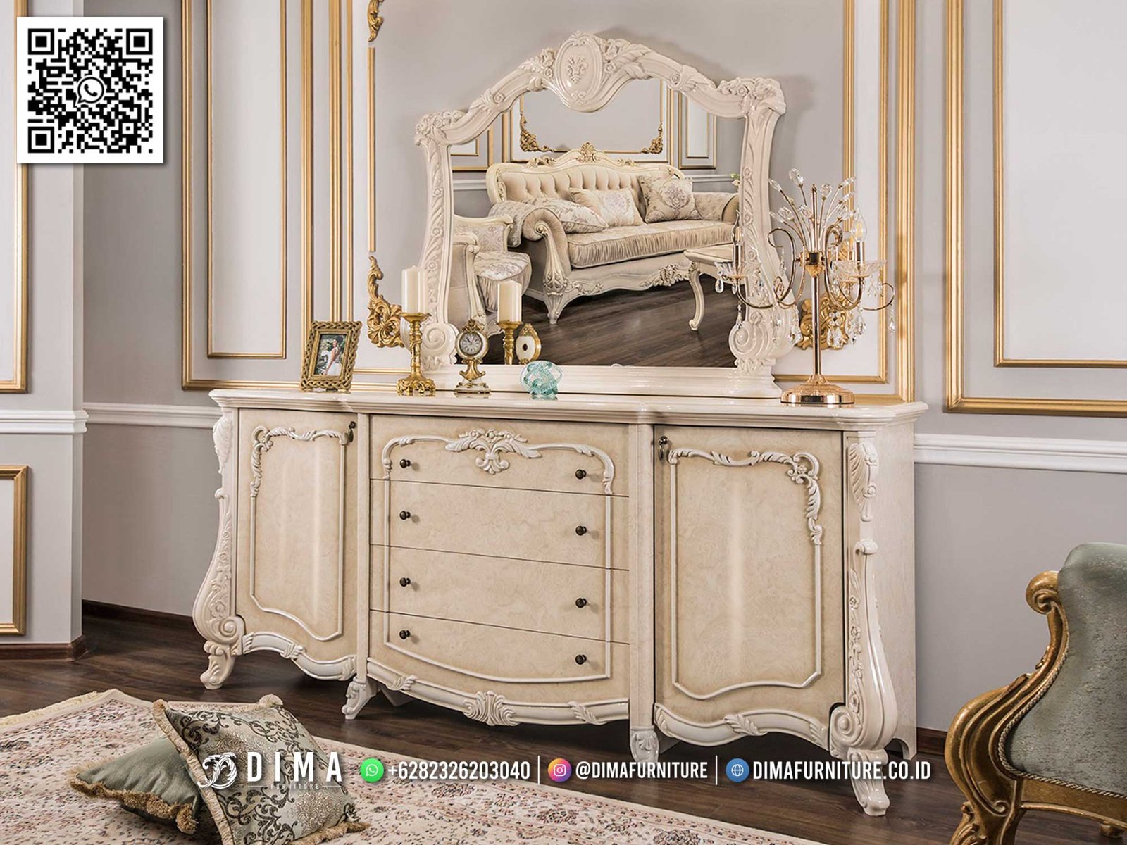 Produk ini dibuat oleh pengrajin jepara berpengalaman, dengan detail ukiran yang halus dan proporsional. Kesan mewah tetap terasa tanpa terlihat berlebihan, sehingga cocok untuk rumah bergaya klasik, neoklasik, hingga luxury modern.