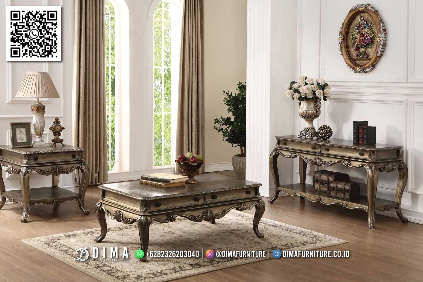 Set meja tamu classic silver premium klasik jepara menjadi pilihan ideal bagi anda yang ingin menghadirkan kemewahan abadi dalam ruang tamu. Dengan kombinasi keindahan, kualitas, dan gaya klasik yang tak lekang waktu, furnitur ini akan mempercantik hunian anda dan memberikan kesan pertama yang berkelas.