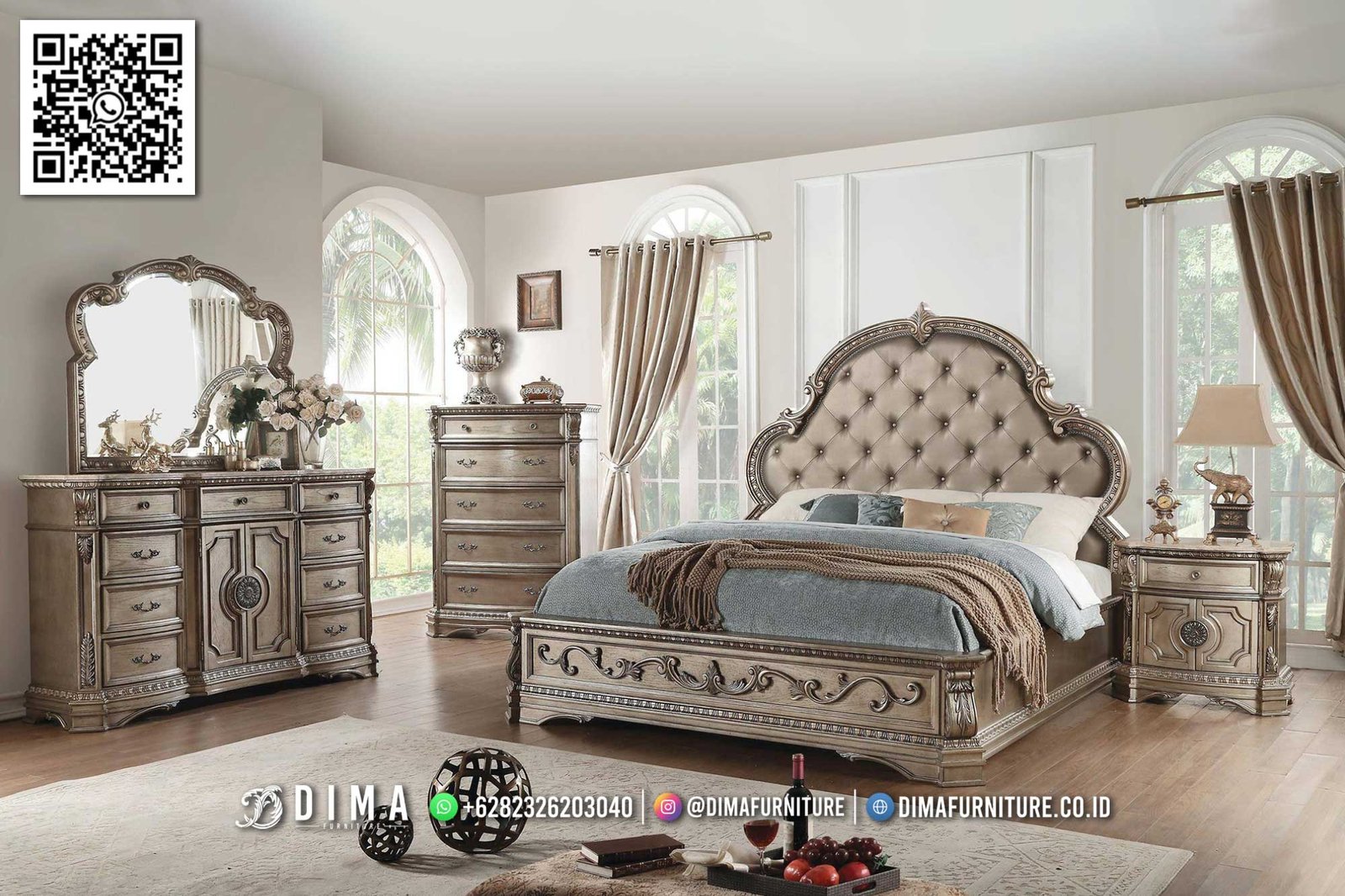 Dengan desain yang seimbang antara klasik dan modern, tempat tidur mewah elegan dakota high quality siap melengkapi kamar tidur anda agar terasa lebih nyaman dan tertata.